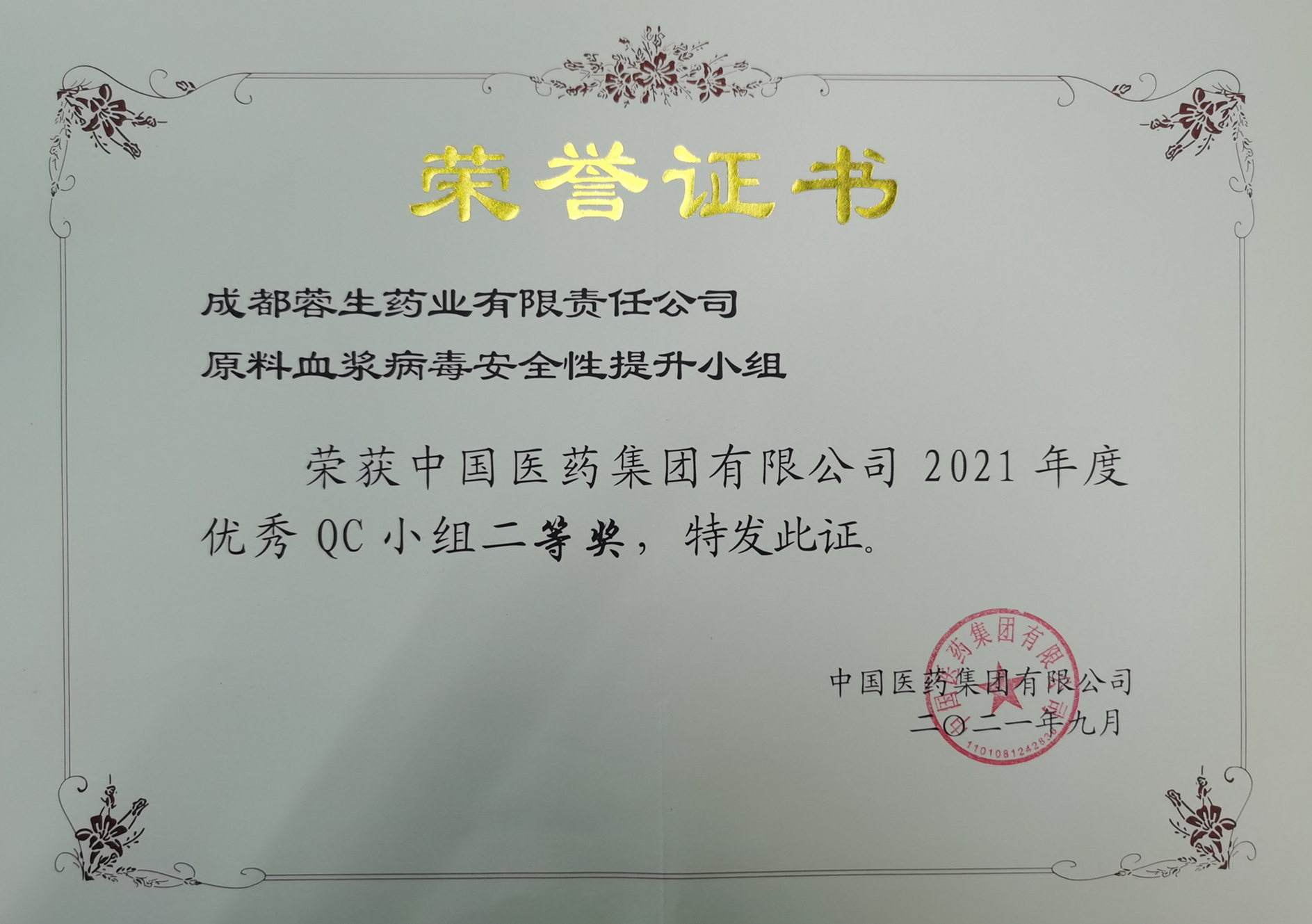 在dafa娱乐场官网组织的2021年度优秀QC小组比赛中,成都蓉生选送的原料血浆病毒安全提升小组项目脱颖而出,荣获dafa娱乐场官网2021年度优秀QC小组
