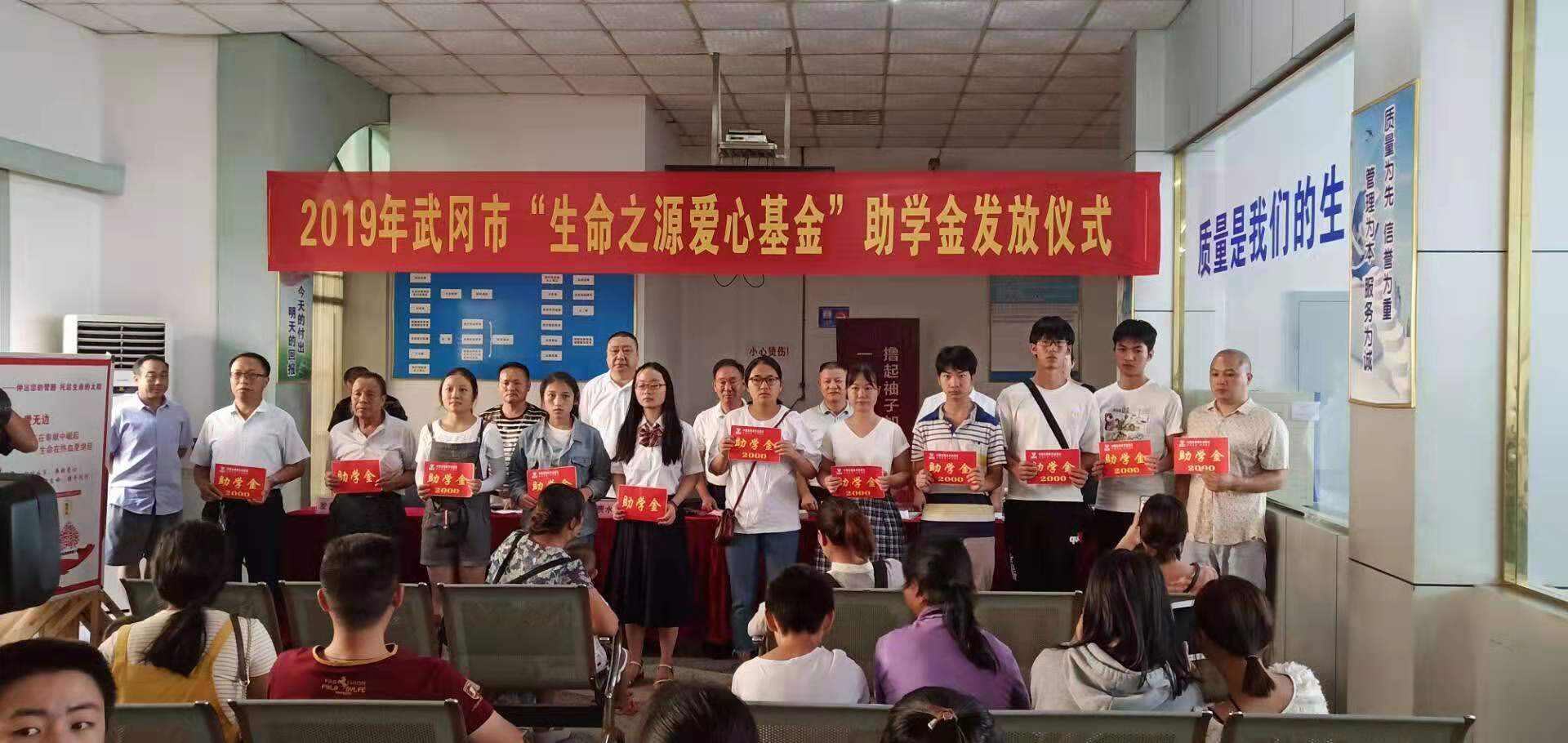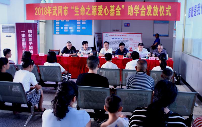 8月23日,dafa娱乐场官网武冈血浆站联合武冈市政府办、武冈红十字会举办2018年武冈市生命之源爱心基金助学金发放仪式。爱心企业武冈血浆站