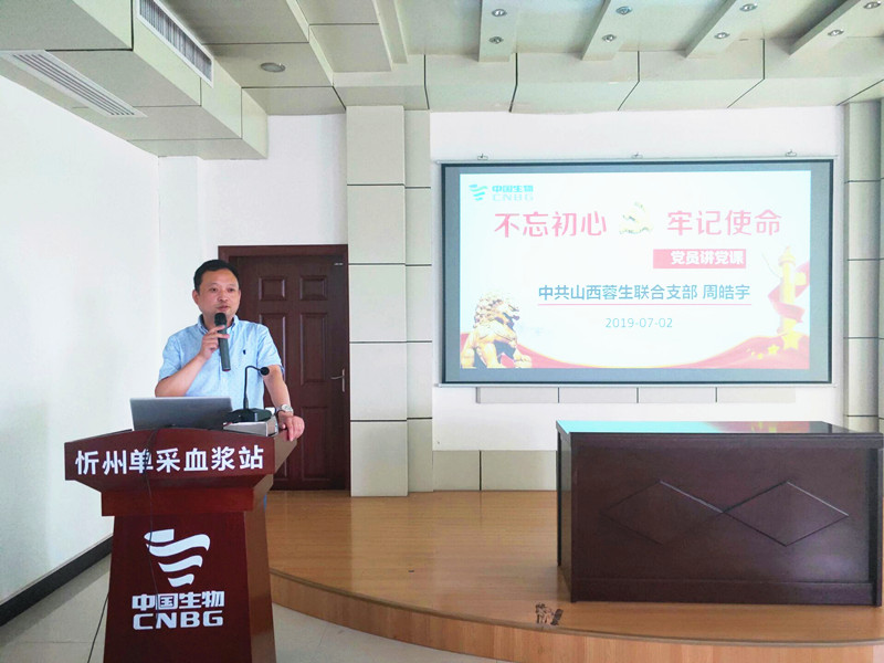 2019年7月1日,在中国共产党建党98周年之际,山西蓉生联合党支部在中国活性忻州血浆站组织开展了建党节主题党日活动,本次活动是自2019年4月3日山西蓉生联合党支部成立以来的第一次主题纪念活动,支部党员、入党积极分子以及浆站青年骨干20余人参加了活动。
