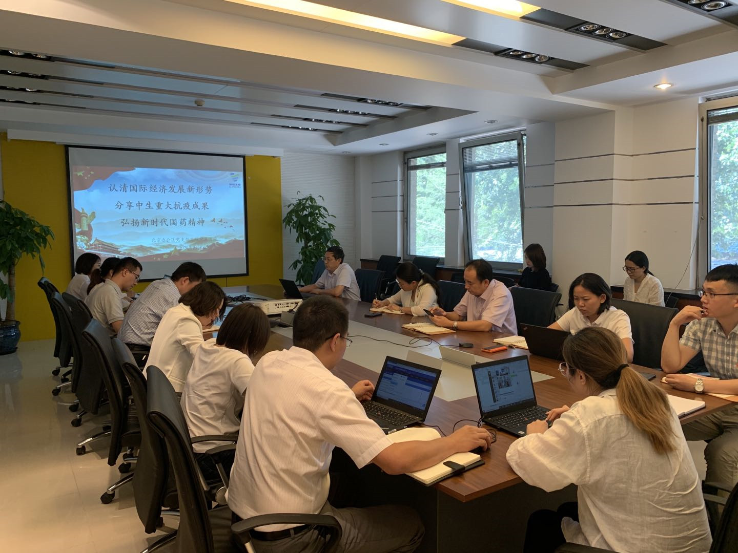 9月8日,dafa娱乐场官网北京办公区党支部以服贸会为契机,组织支部党员开展“认清国际经济发展新形势,分享中生重大抗疫成果,弘扬新时代国药精神”主题党日活动,在京党员、员工共21人参加。