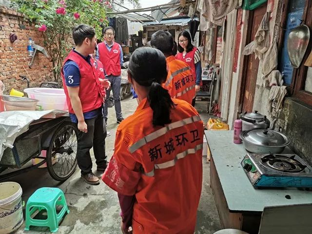 在“新城环卫”负责人的带领下,青年志愿者们来到了环卫工人何大姐夫妇和郭师傅的家中。