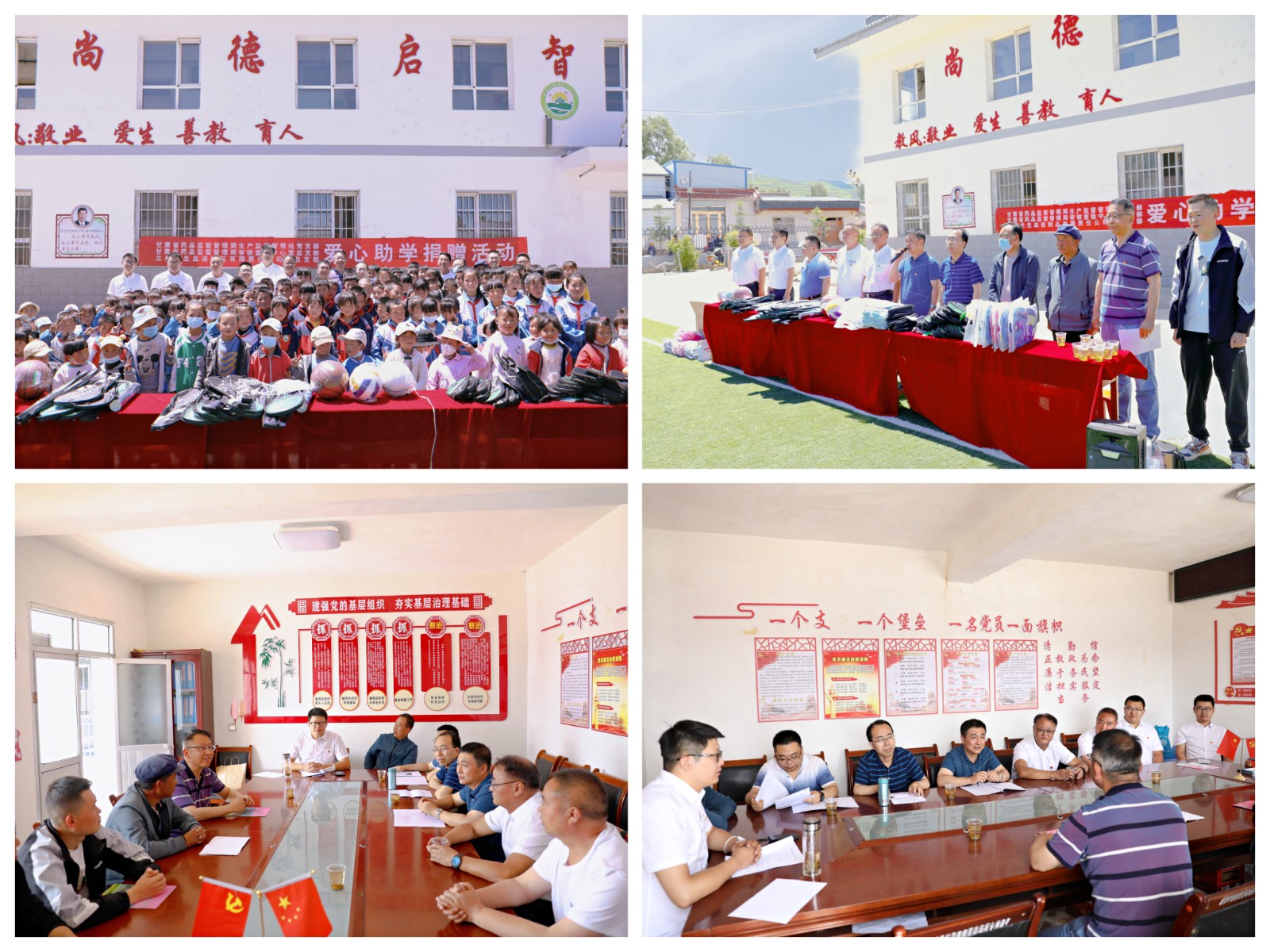 兰州血制党总支联合甘肃省药监局药品生产监管处、甘肃省药监局审核查验中心、定西白银地区浆站联合党支部,开展爱心助学捐赠暨支部共建活动。四个党组织的党员代表,将书包、篮球等学习用品,送到定西市岷县闾井镇林口村小学。活动后,同志们前往林口村村委会看望甘肃省药监局审核查验中心驻村干部,并参观中国活性岷县单采血浆站,详细了解献浆的全过程,围绕基层党建、浆站发展等工作开展座谈。