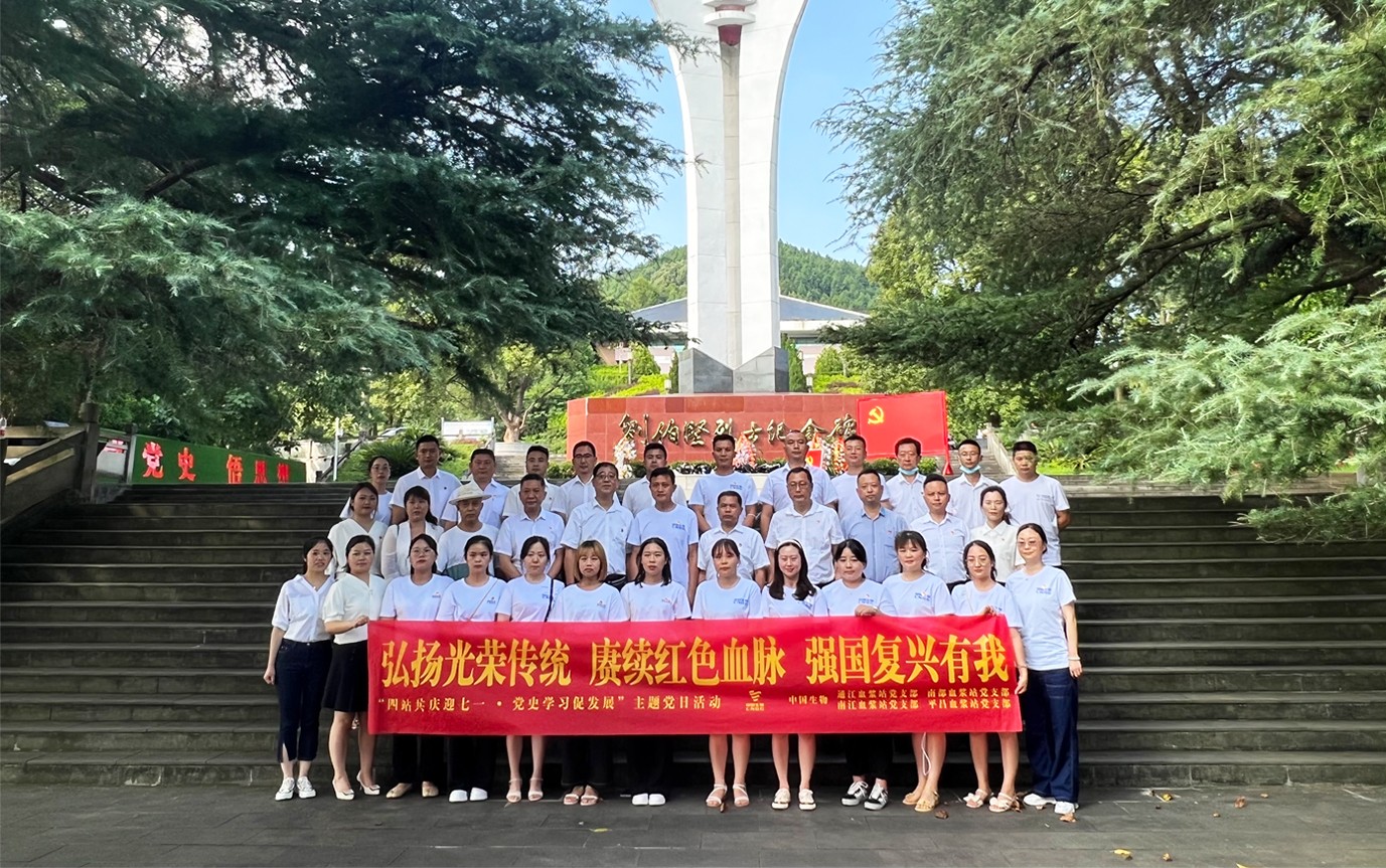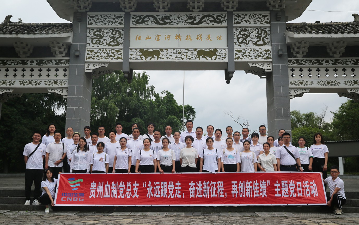 贵州血制党总支组织党员、团员及工会代表到贵州省独山县“深河桥抗日文化园”红色教育基地开展了“永远跟党走,奋进新征程,再创新佳绩”的七一主题红色党日活动。通过实地参观红色革命历史长廊,聆听革命将士在征战独山时发生的战斗事迹,向烈士敬献花篮等形式,回顾红色革命历史,传承先辈奉献精神。