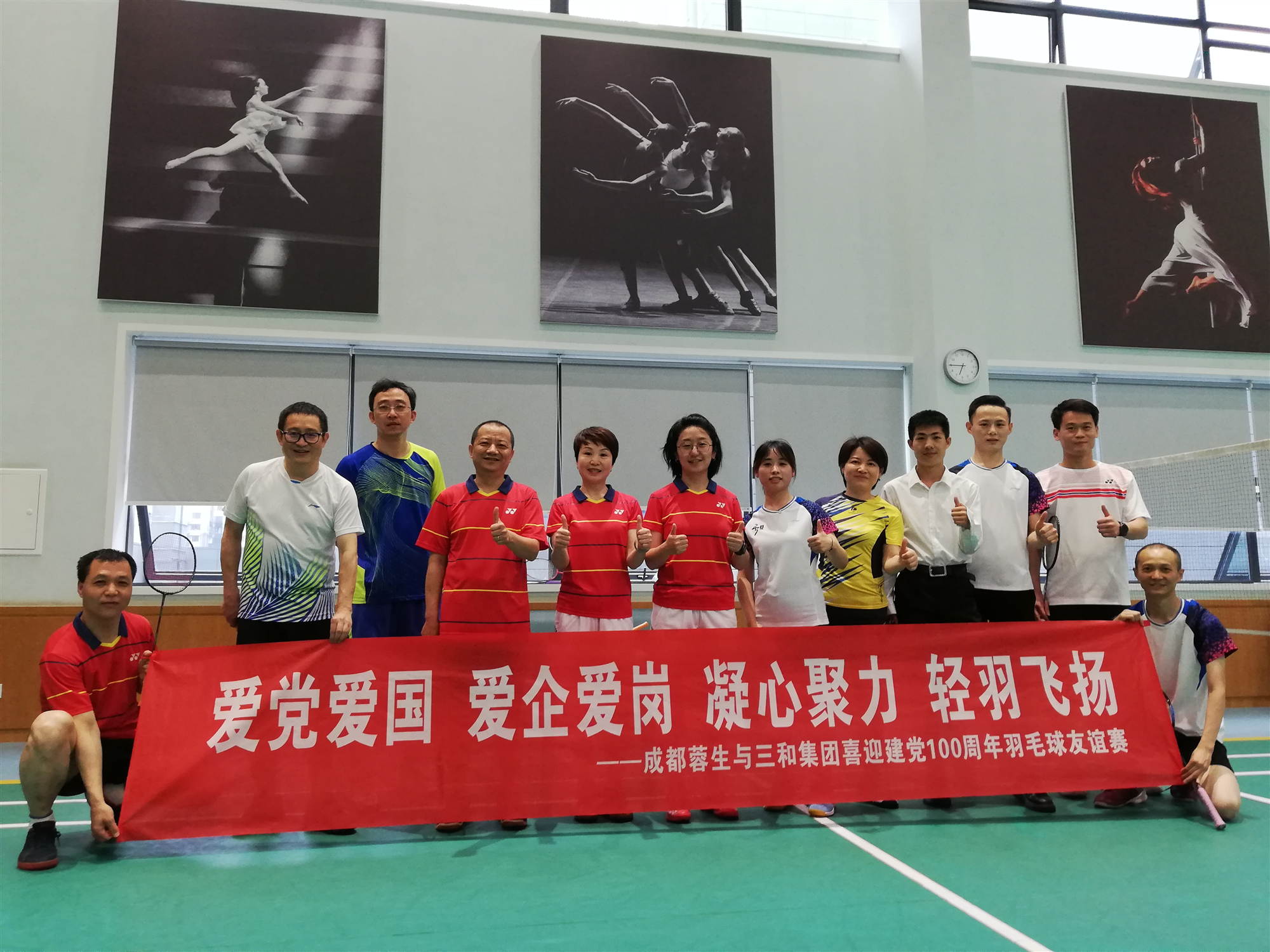 6月2日,在中国共产党百年华诞来临之际,成都蓉生职工羽毛球协会与成都三和集团羽毛球队开展了一场以“爱党爱国、爱企爱岗、凝心聚力、轻羽飞扬”为主题的羽毛球友谊赛。