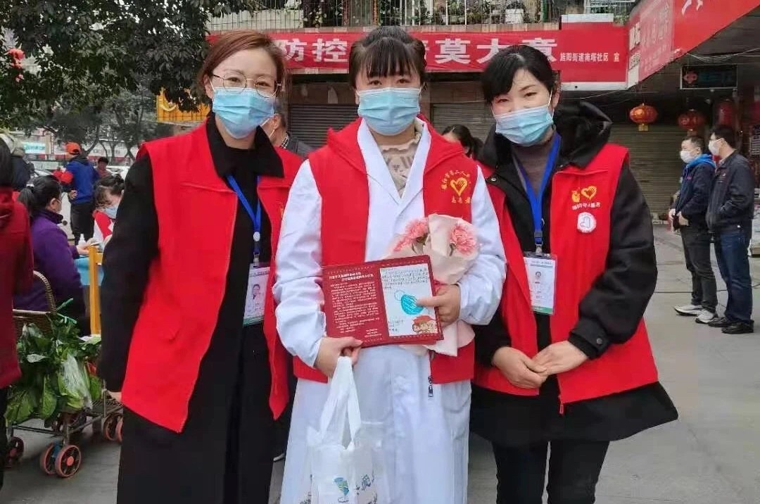 活动中,罗江血浆站的6名成员组成的志愿者方队,将鲜花与祝福送给身边辛勤工作的新时代雷锋们,他们之中有社区工作者、有消防战士、有医务工作者、有清洁工人等,他们在一个个平凡的岗位上,发扬螺丝钉精神,立足本职、忠于职守、兢兢业业,干一行爱一行、专一行精一行,用青春和担当诠释初心、践行使命。