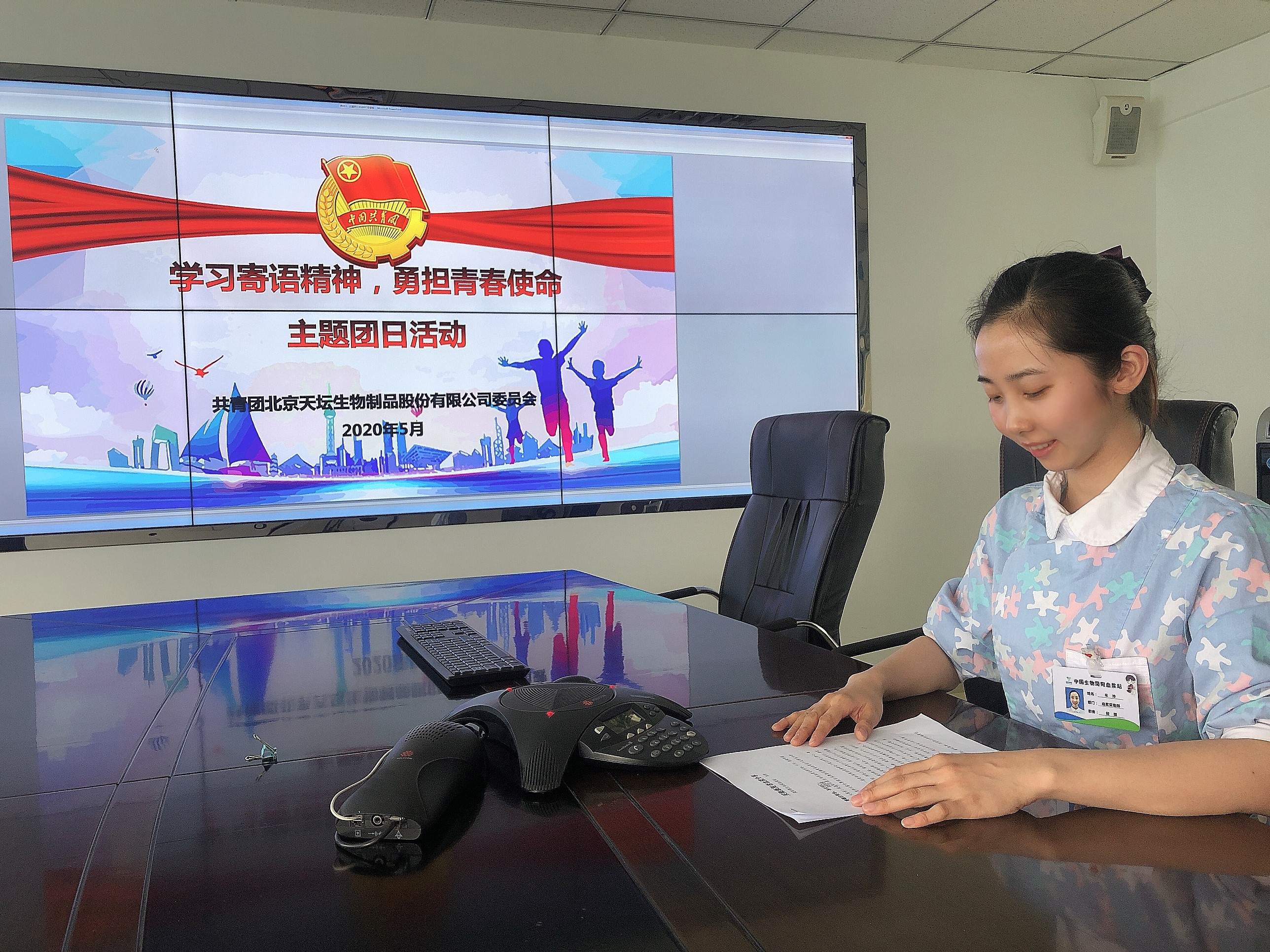 与会团员青年一起学习了习近平总书记五四寄语精神,三位优秀代表分享了“逆行”事迹。中国活性武穴血浆站陆凤萍:“2020年是我一生中最难忘的一年,也是最不平凡的一年。作为一名医务工作者,参与这场没有硝烟的“战役”中,这是我义不容辞的责任......心中只想着早日取得科研成果的胜利、早日战胜疫情、早日向党和人民交出满意答卷......我们并肩作战,齐心协力,克服重重困难,通过层层关卡,顺利完成了工作任务。”